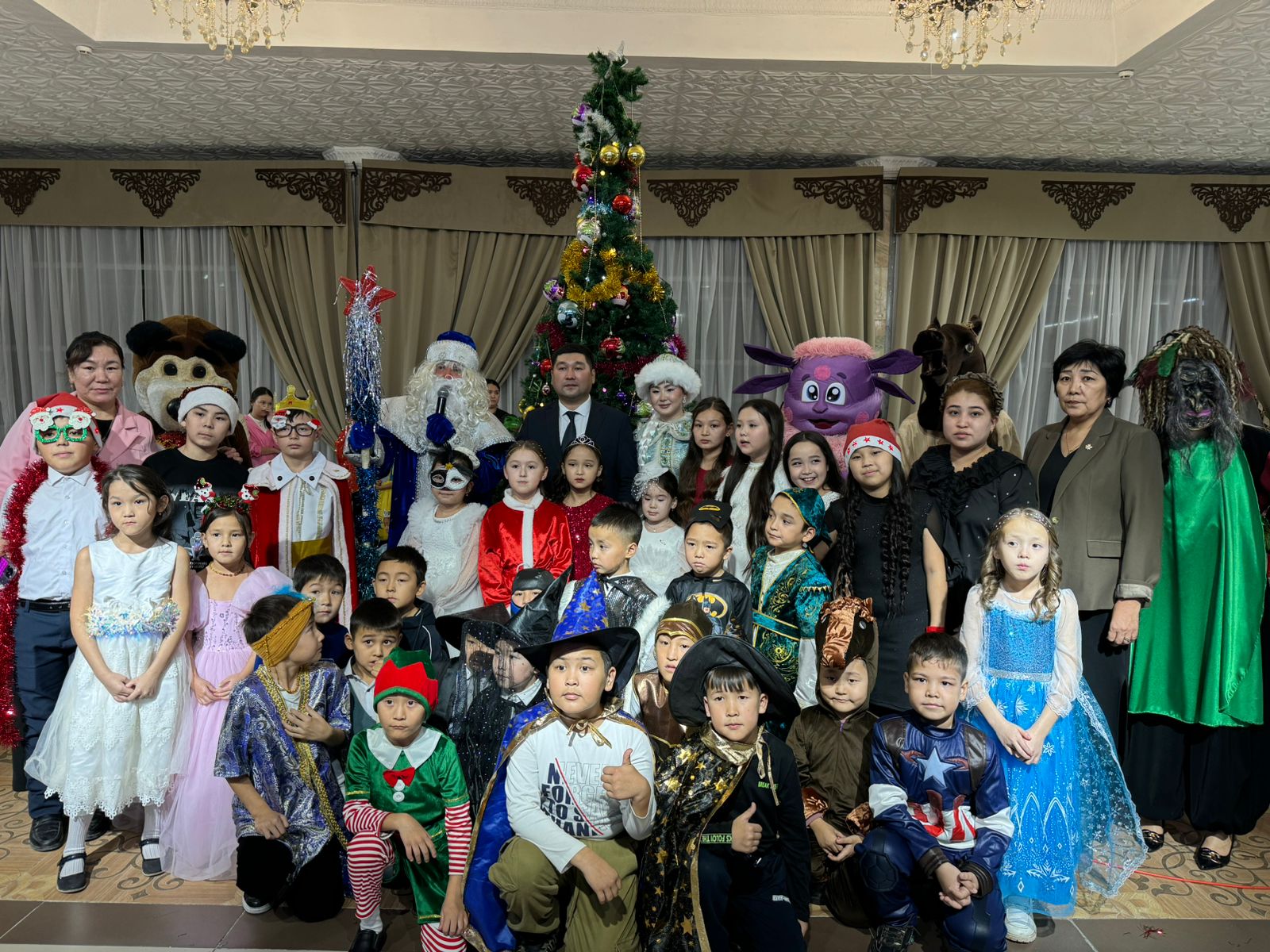 Мерекелік кешке әлеуметтік қолдауды қажет ететін және көпбалалы отбасылардан шыққан 130 бала шақырылды. Әсем безендірілген, жарқыраған шамдармен көмкерілген шырша маңына жиналған балаларды шат күлкі мен мерекелік көңіл-күй қарсы алды.