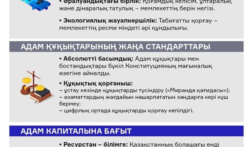 Қазақстанда жүргізіліп жатқан конституциялық реформалар аясында жаңа Конституция жобасының негізгі басымдықтары айқындалуда. Конституциялық реформа жөніндегі…
