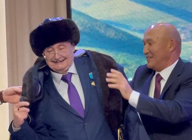 Сондай-ақ кеш барысында Жаңаарқа ауданының әкімі Қанат Қожықаев халық әртісіне аудан атынан Құрмет грамотасын табыс етіп, сый-сияпат көрсетті.